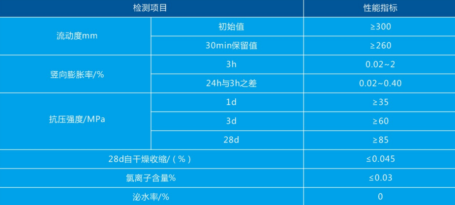 1、流动性好:初始流动度可达330-350mm;2小时后还能保持到310mm以上;
