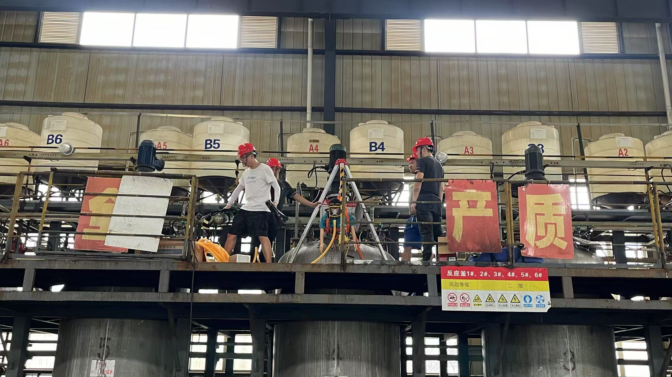 ★现场工作人员发现配料罐区域化学品泄漏后,立即通过对讲机方式报告险情,并启动现场警报